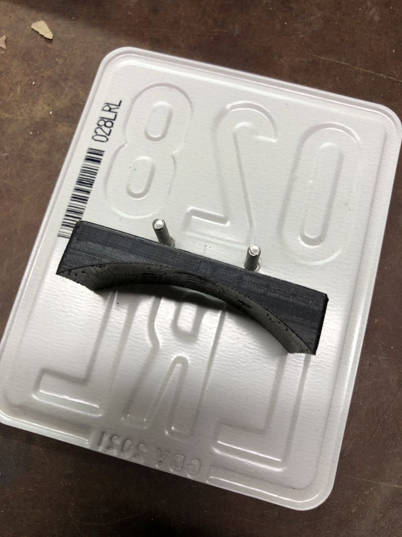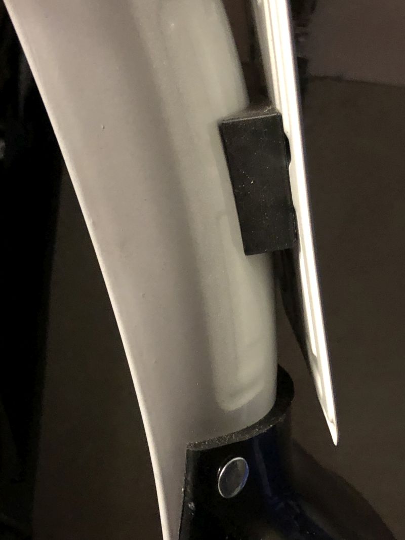 Auf der einen Seite ist er flach so das das Kennzeichen gut aufliegt, auf der anderen Seite ist er wie die beiden Rundungen des Kotflügels geformt. Beides wird mit zwei Edelstahlschrauben M4x20 und selbst sichernden Muttern verbunden.